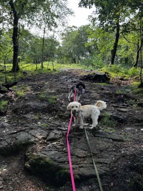 But the real highlight? The pups! Cookie and Biscuit had the time of their lives in the enormous, partially enclosed woodland garden. From sniffing out every corner to chasing each other through the trees, their tails didn’t stop wagging. It felt so good knowing they had their own safe little adventure playground while we relaxed.